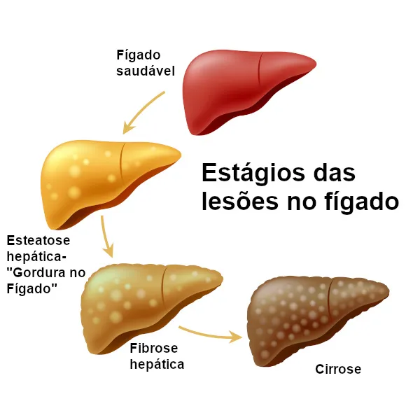 O acúmulo de gordura no fígado não é um processo inofensivo. Ele induz um estado de inflamação e estresse oxidativo que, se não for tratado, pode evoluir para quadros mais graves como a esteato-hepatite, fibrose e, em estágios avançados, cirrose. O principal gatilho por trás desse ciclo é a resistência à insulina, diretamente ligada à alta ingestão de carboidratos simples na dieta.